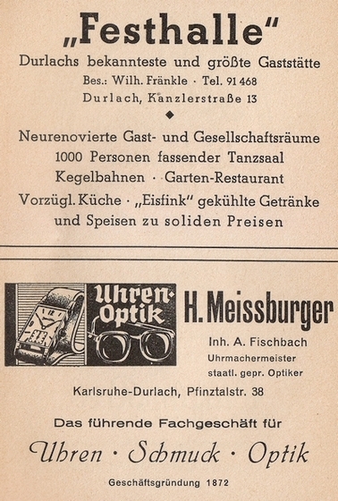 Friedrich Eberle: "Markgrafenstadt Durlach mit ihrem Turmberg" 1951 - Ess